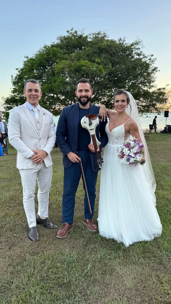 Foi muito emocionante. Vendo uns vídeos do casamento e ouvindo as músicas tocadas no violino, que coisa mais linda... Eu me arrumando e já ouvindo John recebendo os convidados com músicas lindas e de muito bom gosto, tocadas perfeitamente... me arrepiei a todo momento kkkk todos amaram! A condução das músicas na cerimônia também... Perfeito!